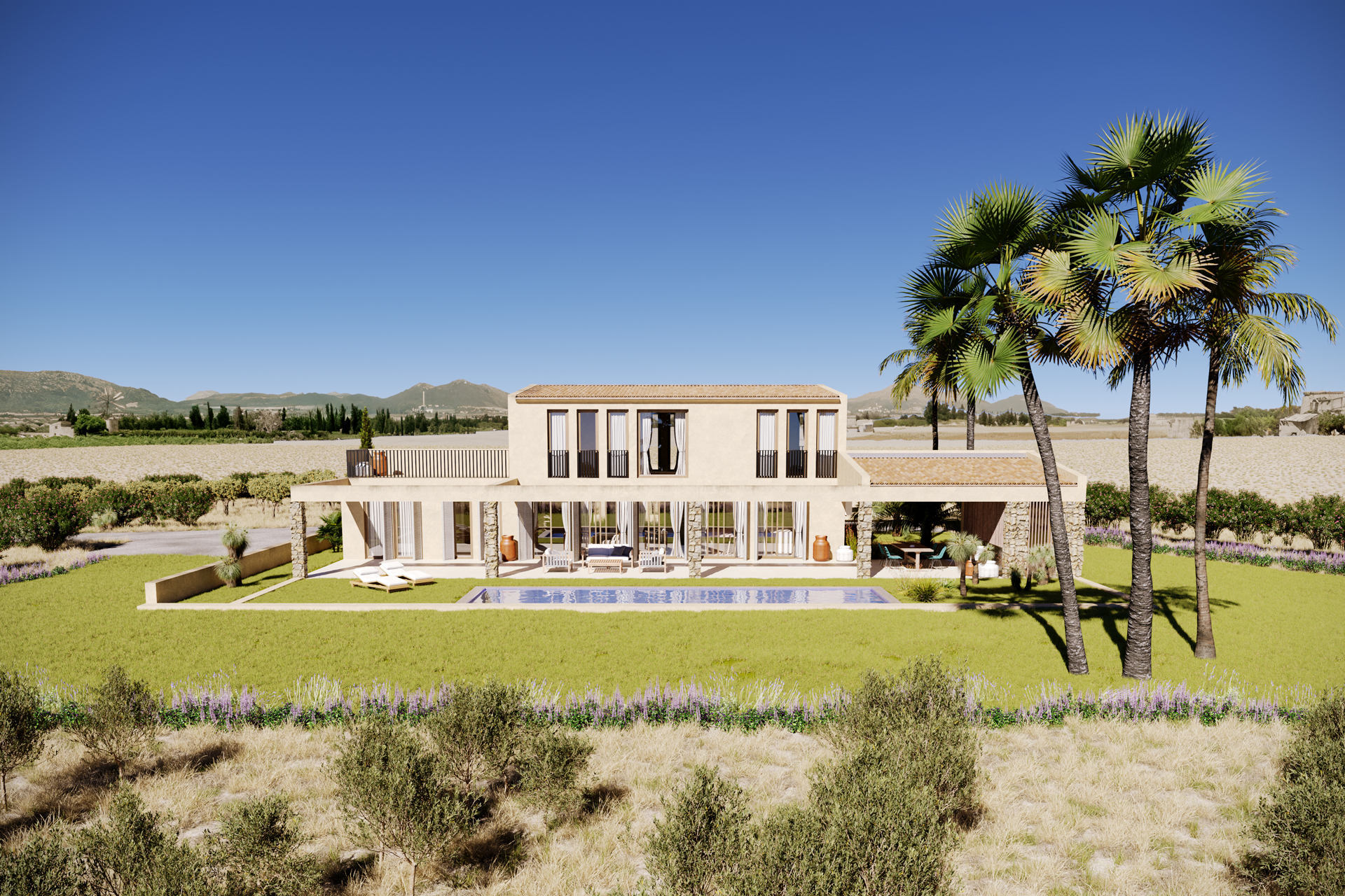 El pueblo ofrece todo lo necesario para el día a día: supermercados, centro médico, restaurantes locales y un popular mercado dominical. Para las familias, hay colegios locales y opciones internacionales a poca distancia. Palma está a unos 40 minutos en coche y la estación de tren más cercana está en Sa Pobla, a un corto trayecto en coche.